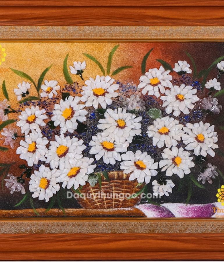 Thông tin tranh đá quý phong thủy đẹp - Tranh hoa ghép thúng cúc