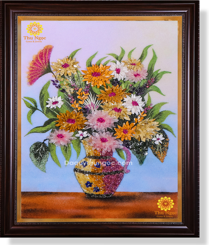 – Mô tả: Tranh hoa ghép Van gogh được làm từ các loại đá Tự Nhiên 100% của các mỏ tại 3 miền Bắc Trung Nam Việt Nam, chất liệu kết dính là keo chuyên dụng gắn đá quý nhập khẩu từ Thái Lan.