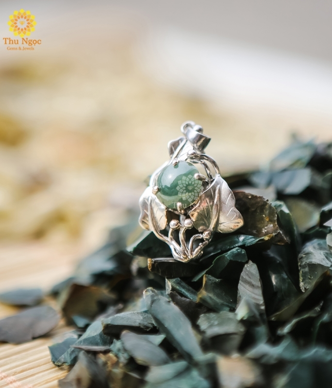 Trang sức đá phong thủy Mặt ngọc Myanmar bọc bạc