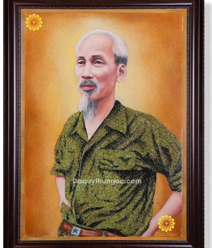 Thông tin tranh đá quý phong thủy treo tường đẹp - Tranh Bác Hồ mặc quân phục
