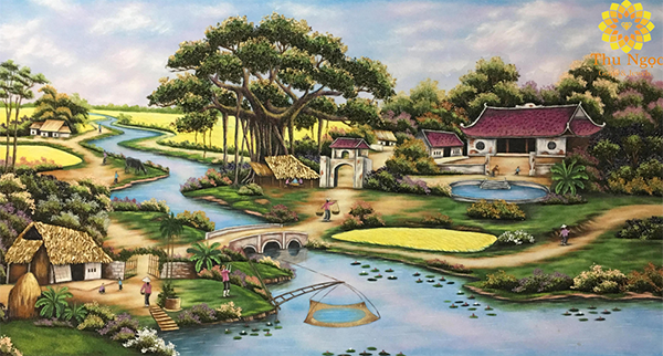 • Như bức tranh phòng cảnh này người nghệ nhân phải tả trước cổng làng, con đường, kênh mương, ruộng lúa, các ngôi nhà , núi và khoảng trời xanh. Con trâu và cậu bé cưỡi trâu.