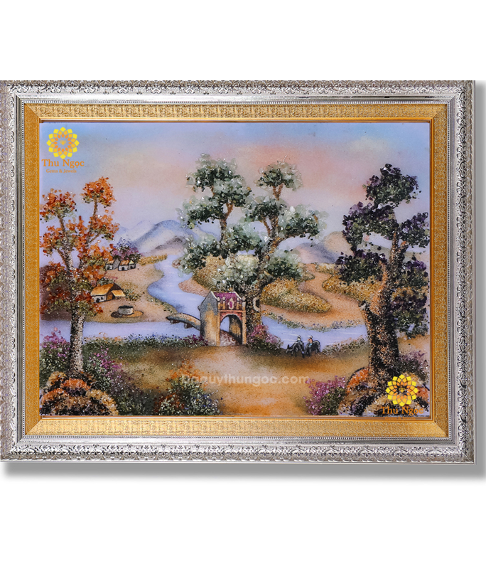 Tranh đá quý phong cảnh làng quê mang nguồn năng lượng lớn trong thiên nhiên không chỉ mang lại giá trị về mỹ quan cho ngôi nhà mà còn kéo theo nhiều giá trị phong thủy khác. Sự kết hợp hài hòa đặc biệt để tạo nên một bức tranh đá quý chất lượng lung linh huyền ảo.